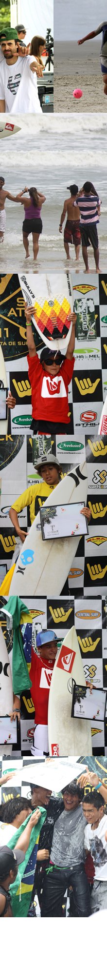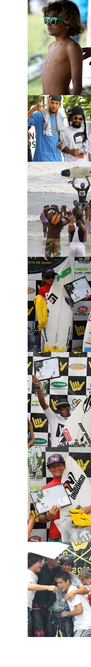 Após quatro etapas, o Circuito Paulista Sub-18 – Hang Loose Surf Attack – chegou ao fim definindo os campeões nas categorias Júnior (sub-18), Mirim (sub-16), Iniciantes (sub-14), Estreante (sub-12) e Petit (sub-10). Neste ano o circuito passou por Ubatuba, Mongaguá, São Sebastião e encerrou no último final de semana no Canto do Maluf, Guarujá. Apesar de a previsão ser de chuva para os dias 3 e 4, o Surf Attack mostrou que além de uma forte estrutura, também conta com a sorte a seu favor. O tempo se manteve estável por todo o fim de semana presenteando a todos com um clima agradável e ondas de até meio metro, possibilitando uma etapa competitiva. A categoria Júnior, mais disputada do circuito, criou grande suspense no sábado com a eliminação de Lucas Santos nas oitavas de final, deixando Deivid Silva com chances de conquistar o título na categoria. Mas Wesley Santos fez uma final impecável e estragou a festa de Deivid, que ficou em segundo lugar. Com isso, Lucas e Deivid empataram no ranking e em todos os critérios de desempate. Nesse caso, fica com o título quem conquistou o melhor resultado na edição do ano anterior. Como em 2010 Lucas Santos finalizou o circuito em 2º lugar, levou a melhor e ficou com o título de 2011. Entre a premiação Lucas ganhou uma passagem para Fernando de Noronha, para curtir de perto o Hang Loose Pro Contest, em fevereiro de 2012. Apesar de ter deixado escapar por pouco o título na Júnior, Deivid Silva teve um resultado excelente na final da Mirim, faturando a etapa e acumulando 2729 pontos, o que lhe rendeu o título na categoria e a cobiçada passagem para Noronha. Entre os Iniciantes ficaram empatados Victor Bernardo, que não participou da última etapa por estar em temporada havaiana e Igor Moraes. Mas pelo critério de desempate, Igor faturou o título, recebendo de premiação kits dos patrocinadores, uma câmera Go Pro e uma Beach Bike, oferecidos pela Hang Loose. Samuel Pupo, que no ano passado foi invicto na categoria Petit, esse ano repetiu o resultado na Estreante. Venceu as quatro etapas e deixou a pergunta no ar – De que será que se alimenta a família Pupo?! Cauê Germano e Eduardo Motta fizeram um circuito incrível na categoria Petit. Mas o pequeno Eduardo se deu melhor na última etapa e faturou o título. Certamente esses nomes serão ditos por vários anos no Surf Attack. Uma carreira de sucesso os espera! A etapa de Guarujá teve a participação de Dj Sleep, Seth MC e Mister Jordan, que levantaram a galera com música de peso. Seth MC ainda fez rimas com o nome dos finalistas antes de tocar a buzina. Segundo organizadores, competidores e federações, esse foi sem dúvidas uma das melhores edições do Hang Loose Surf Attack, mantendo a tradição de ser berço do surf nacional e cada vez mais respeitando e valorizando o surfista em primeiro lugar. A Hang Loose agradece a participação de todos durante o circuito. Federações, competidores, familiares, organizadores e público presente e virtual. Desejamos a todos vocês um alucinante ano novo, saúde, paz e muito surfe! Aloha! Petit: RANKING FINAL Cidade Campeã: Guarujá |